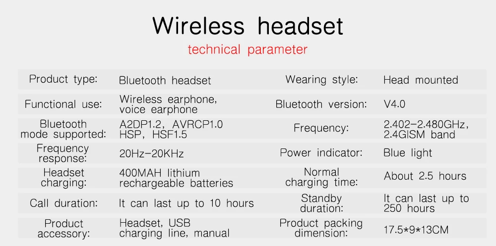 Headphone styles:Wireless Bluetooth 4.1 headset, voice headset