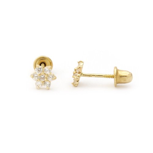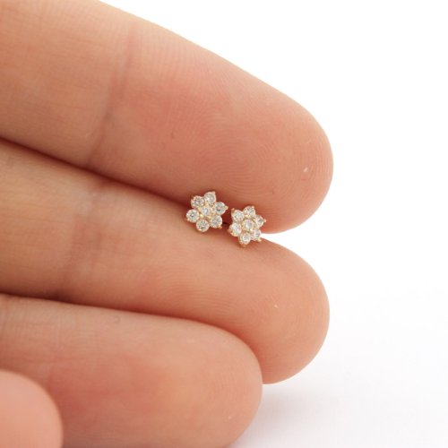 - Title : 14k Yellow Gold & CZ Little Flower Stud Earrings