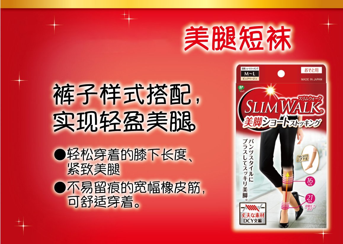 ● It is a short stocking for the sake of "Slim Walk".