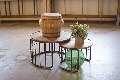 -. Feature : Made of natural wood and metal / Measurements: large 25" x 5"d x 16"t and small 20"d x 14"t / Nesting tables are great for tiny houses or small apartments / Store the smaller one when not in use and save space