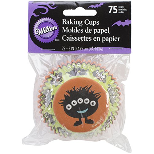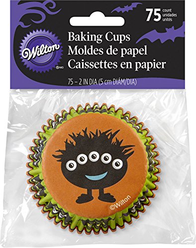 Studio : Wilton Publisher : Wilton Binding : Kitchen Product Description Add some fun to your Halloween party with the Wilton Halloween standard-size baking cups, featuring various monsters, owls, jack-o'-lanterns and more on the sides and happy five-eyed monster on the bottom. The standard-size 2 in. (5 cm) baking cups are perfect for your favorite cupcake recipes. With 75 baking cups, you can make cupcakes for a crowd or several Halloween parties. Baking cups fit standard cupcake/muffin pans, making pan cleanup easy. They are also ideal for sweets, party snacks, nut cups or craft projects. Coordinating products available. Package contains 75 baking cups 2 in. (5 cm) dia. Made in china. 0