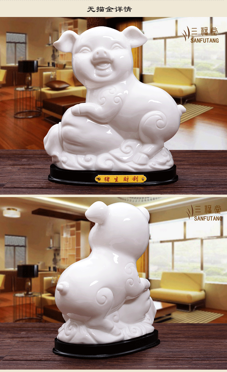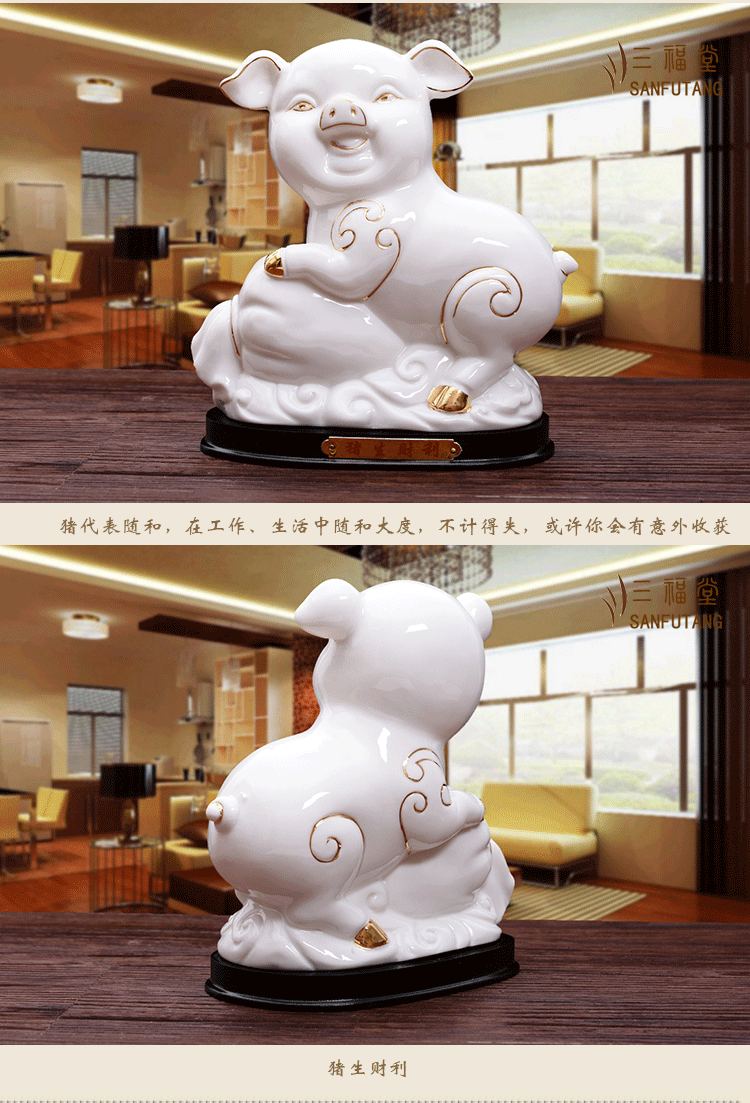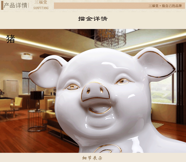 陶瓷小猪摆件12十二生肖可爱猪招财客厅装饰品结婚礼物描金风水猪