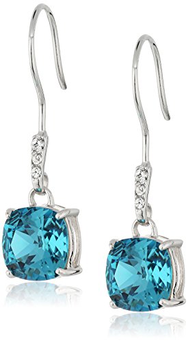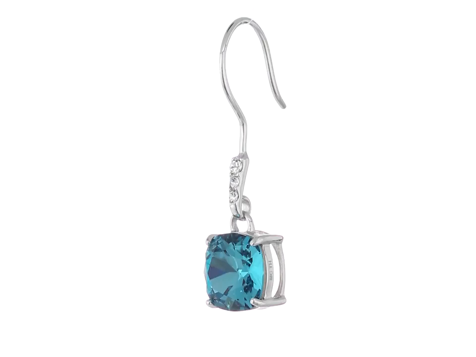 Sterling Silver Swarovski Indicolite Crystal Cushion Dangle Earrings