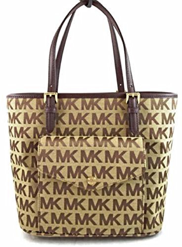 -. Feature : Handles are 7 inches (18 Cm) drop. Double handles. Fit shoulders comfortably. / 12 in (Width) x 9.5 in (Height) x 5 in (Depth) / Beige/Ebony/Mocha. 20-karat gold-plated hardware / One front pocket with snap closure. Four protective feet at the bottom. / Interior is lined with signature nylon. middle, padded, zipped compartment, a side zipped pocket, a cellphone pockets and 2 slip pockets.