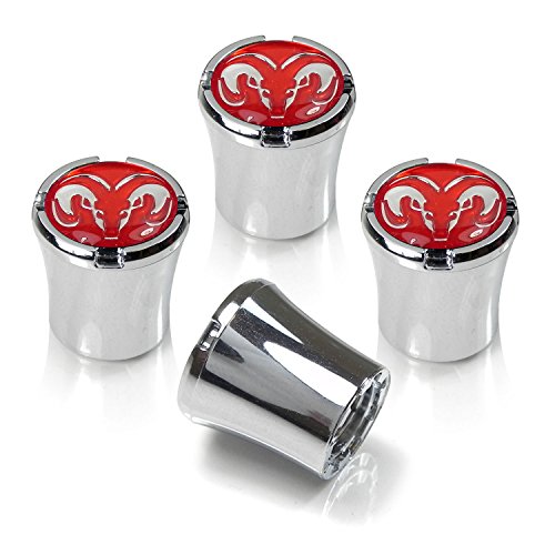 Dodge RAM Red Logo Chrome Tire Stem Valve Caps, Official Licensed
