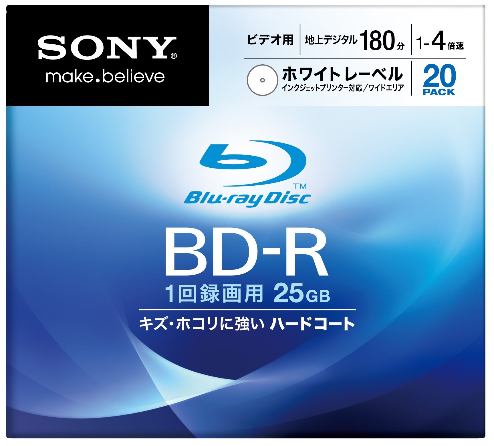 Sony Blu-ray Disc 20 Pack - 25GB 4X Speed BD-R - White Inkjet Printable [2010 Version]