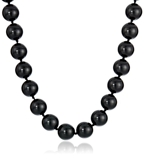 Add a little drama to an ordinary outfit with this gorgeous Black Onyx Bead Necklace. Large 12mm glossy black onyx beads are knotted along a 16-inch strand that closes with a sterling silver lobster clasp. A bead-tipped extension chain allows you to adjust the length to suit your taste, or your neckline. Pair this versatile piece with crisp white blouse or a patterned suit, or let it spice up a simple tee.