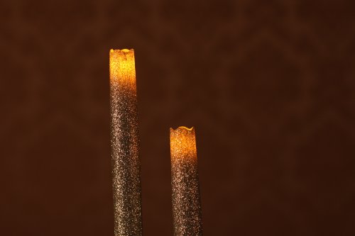 - Title : Home Impressions Battery Operated Flameless Real Wax Melted Led Taper Candle Light,Six Hour Timer,9-inch, Gold sparkling Glitter ,pack of 6