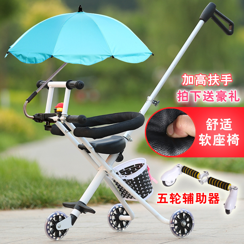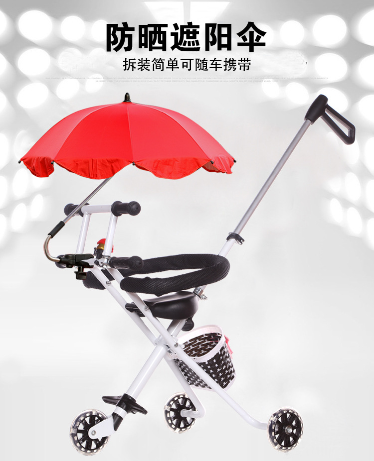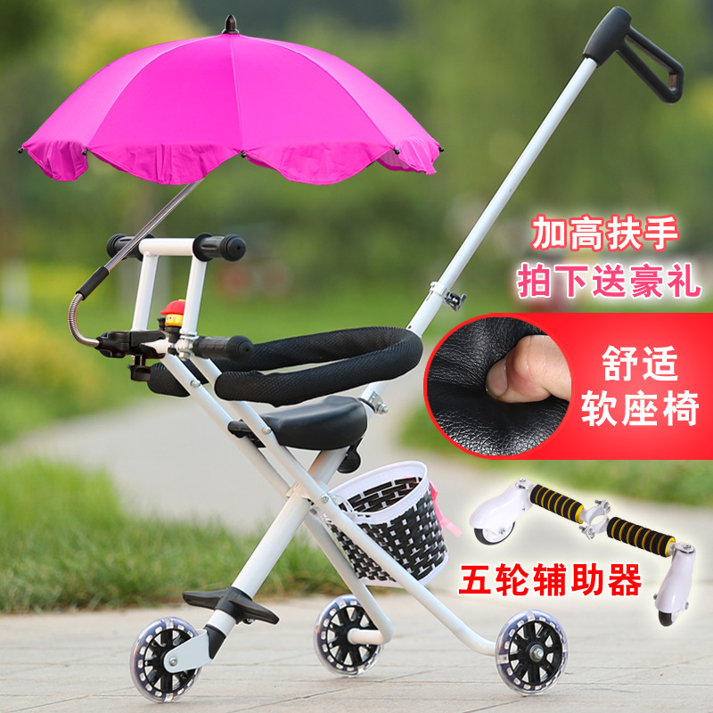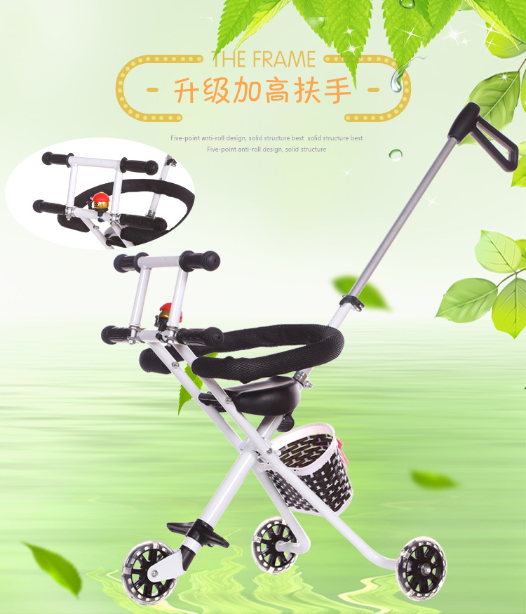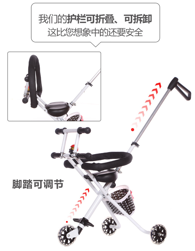 溜娃神器第8代震撼来袭,5轮更平稳,解决翻车问题,坐板下方交叉块采用1.2厘米铁块,加厚合金卡子,螺旋式锁扣更稳固推杆。加护栏轻便可折叠,出门郊游,商场购物辣妈必备的神器,脚踏可以根据宝宝身高调节位置,是一款超轻便儿童折叠车,可称重100斤以内的宝宝。适合2到6岁70厘米至110厘米的儿童
