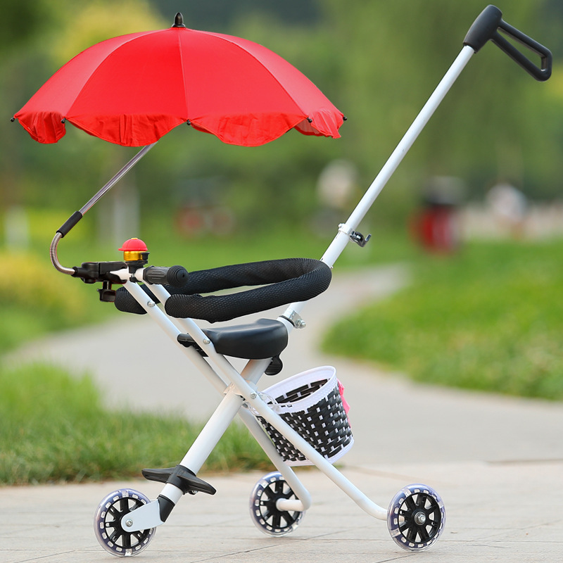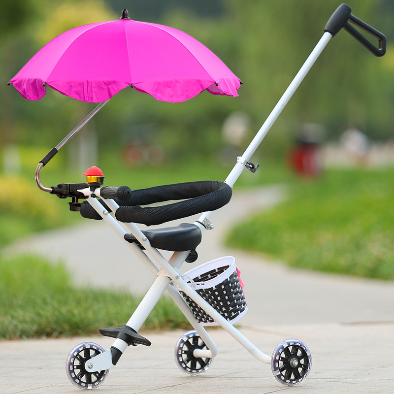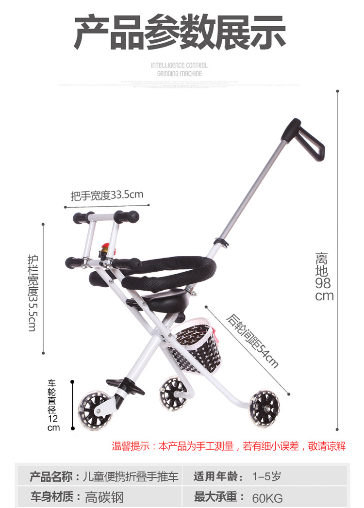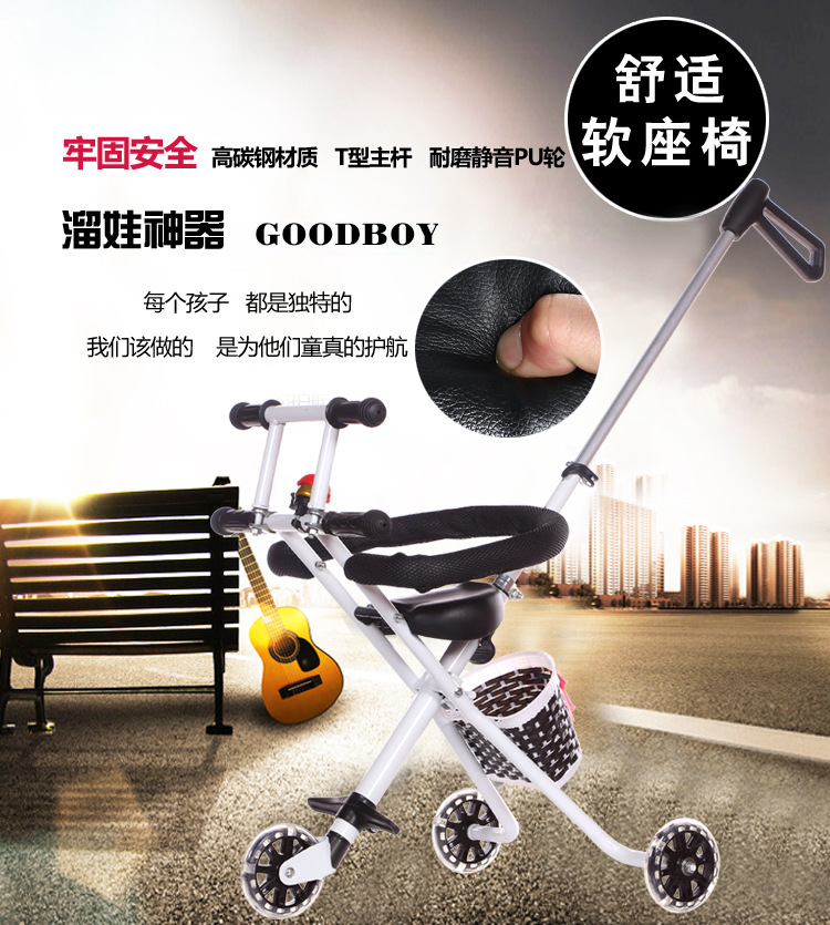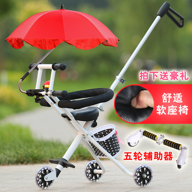 溜娃神器第8代震撼来袭,5轮更平稳,解决翻车问题,坐板下方交叉块采用1.2厘米铁块,加厚合金卡子,螺旋式锁扣更稳固推杆。加护栏轻便可折叠,出门郊游,商场购物辣妈必备的神器,脚踏可以根据宝宝身高调节位置,是一款超轻便儿童折叠车,可称重100斤以内的宝宝。适合2到6岁70厘米至110厘米的儿童