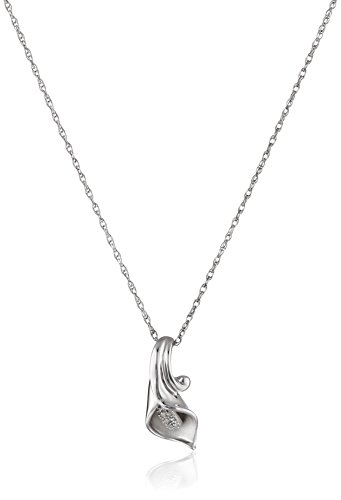 An elegant flower is always in bloom with the Sterling Silver Calla Lily Diamond Pendant. This lovely petal of rhodium-plated silver opens to reveal a "stamen" paved with glittering white diamonds. There are 10 stones in this delicate floral creation. The pendant reaches to a height of .75 inch and is .31 inch wide. It connects to a rope chain 18 inches in length that fastens easily with a spring-ring clasp. The calla lily pairs well with warm weather business casual, or wear it for a touch of spring throughout the year.Feature