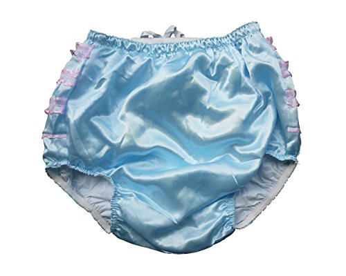 Composed of satin and PVC, this panty fits neatly over a very thick diaper.