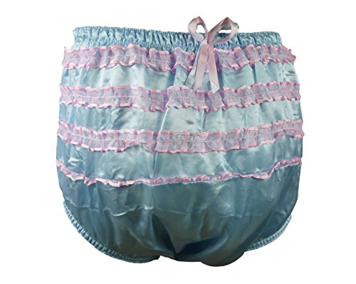 PVC lined with Three rows of nylon lace at Back in a Rhumba style. Comfortable elastic at waist and legs, Satin diaper cover, lined with soft PVC