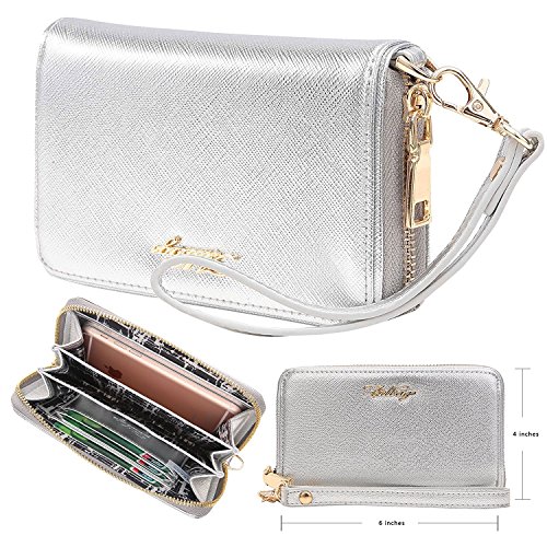 -. Feature : MATERIAL: High quality sturdy synthetic leather with fabric lining; ultra soomth gold tone zipper around closure / DIMENSION: 8"L x 1"W x 4.5"H; shipping weight: 0.6lb / POCKETS: The clutch wallet has 2 large slots for your receipts, bills or tickets, 12 card slots for your cards and 2 zipper pocket for your coins to organize well and easily take your stuffs out / FUNCTION: The ladies wallet designed to hold checkbook, dollar bills, lipstick, keys, cell phone like iPhone 7 plus and any other phones in smaller sizes / WARRANTY: Our leather wallets are well protected with dustproof bags & special package boxes. 100% Refund is available if you are not satisfied with our designer wallets