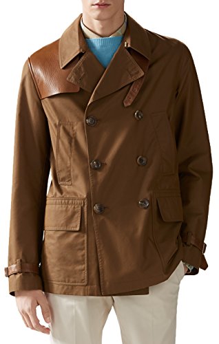 -. Title : Men's Light Brown Washed Gabardine Leather Detail Heritage Trench Coat Jacket