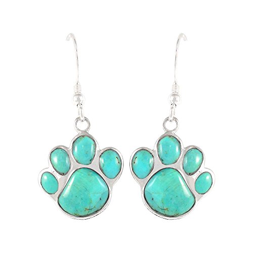 DOG LOVERS! Dog paw dangle earrings in 925 Sterling Silver and genuine gemstones. Amazing craftsmanship. About 2/3" tall (see ruler image).NOTE: Due to the nature of these gemstones, variations in colors/shades and minor imperfections are normal. Our turquoise has been stabilized, treated, and color-enhanced for beauty and durability. Satisfaction always guaranteed.