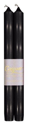 Studio : Caspari Inc. Publisher : Caspari Inc. Binding : Kitchen Product Description Entertaining with Caspari 10-inch taper candles. Each taper in this set of 2 fits perfectly in a standard sized taper holder and has an average burn time of 12 to 14 hours. Made of paraffin and palm wax for durability, with a cotton, lead-free wick. Our candles are unscented, dripless and smokeless. Offered here in Black, our taper candles are the perfect addition to any year around table top or dinner party. Available in a full range of colors. Finish the look with our coordinating high-end paper table top collection. Includes paper dishes, napkins, guest towels and cups-finish the look with our acrylic stemware and top quality pillar candles. Caspari-bringing beauty, style and convenience into your home every day. 0