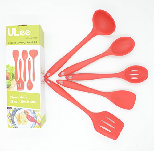 -. Feature : SAVE MONEY WITH QUALITY YOU CAN COUNT ON: If you want a kitchen utensil set that offers you everything, this ULee 5-piece cooking set is what you need without costing you a fortune buying each piece individually. All utensils of set are 100% food-grade silicone and BPA Free. Food grade silicone products are very safe to use in any type of food and it doesn't react with food or beverages. / DESIGNED FOR EASY USING: With a designed handle and perfectly shaped heads, this ULee cooking set is perfect for food cooking and serving. / ONE-PIECE DESIGN FOR EASY CLEANING: The One-Piece Design of this ULee silicone cooking set promises no seams for harboring grease and bacteria!! This lends these tools to easier cleaning and washing. Also, it doesn't retain odors or colors when you use it. / HIGH-HEAT RESISTANCE: This ULee silicone cooking set can at least withstand 446°F. If you're using our silicone products, you don't have to worry that it will melt when you accidently leave it in the pan for a while. / FULL ULEE WARRANTY: If you're not completely satisfied with your purchase of this silicone cooking set, simply let us know and you'll be offered a FULL refund or replacement, no questions asked. Enjoy this absolutely RISK FREE purchase today by clicking the yellow 'Add to Cart button' above.