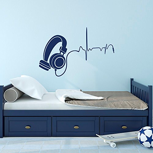 Music Wall Decal DJ Headphone Audio Music Pulse Removable Vinyl Wall Decals Nursery Kids Boys Teens Room Playroom Music Wall Art D¨¦cor