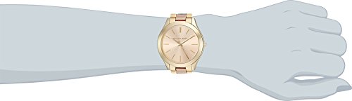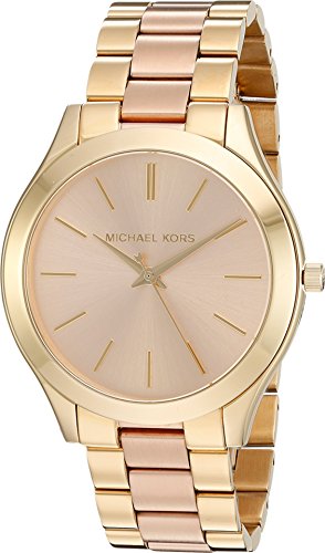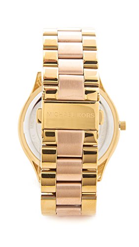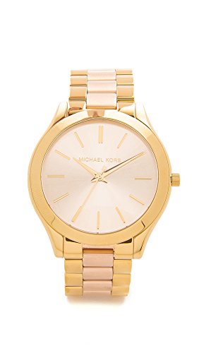 ReleaseDate : 2012-04-23 Studio : Michael Kors Watches Publisher : Michael Kors Watches Binding : Watch Product Description Gold-tone stainless steel case and bracelet. Fold-over clasp closure with push-button release. Three-hand analog display with quartz movement. Gold-tone sunray dial includes hour markers. Polished top ring. Water resistant 5 ATM/50 meters. Imported. 0