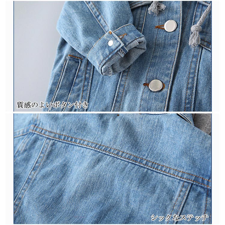 | とってもかわいいの女の子のデニムジャケットが新登場です。肌触りがとっても気持ちいい素材から作られ、お子様も大満足して頂きます。子供の敏感な肌にやさしい素材を使用して、子供の動きを妨げず、体にやさしくフィットします。お子さんをもっとかわいくキュートにお出かけの一枚です。 | |