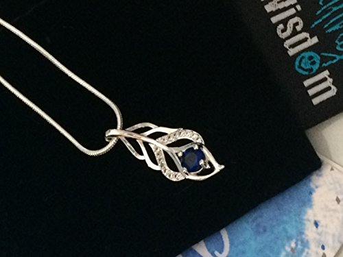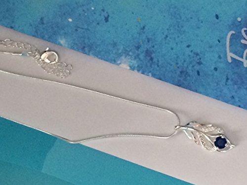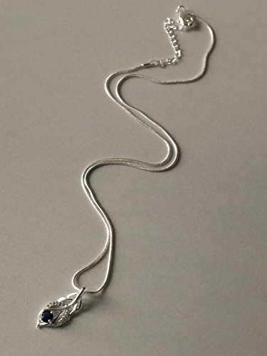 SILVER BLUE LEAF NECKLACE - PENDANT: 2.65 CM x 1.1CM Silver plated. Blue Cubic Zirconia. SNAKE CHAIN: 18 inches plus 2.5 extender.