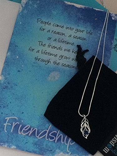 Smiling Wisdom Blue Silver Leaf Necklace Friendship Gift Set - Reason Season Lifetime Friendship Greeting Card - Unique Gift Set For Best Friend Woman - Silver Blue
