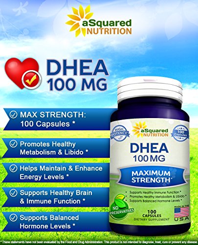 FORMULATED FOR SUPERIOR RESULTS: With 100mg of DHEA per Capsule, aSquared Nutrition’s formula is designed to help restore optimal DHEA levels. Restoring balanced DHEA hormone levels promotes healthy metabolism & libido, helps maintain & enhance energy levels, supports healthy brain & immune function, and supports balanced mood. Taking DHEA can be effective for men as well as women. Don’t settle for other products only providing 5mg, 10mg, 25mg or 50mg of pure DHEA per capsule, pill or tablet. *