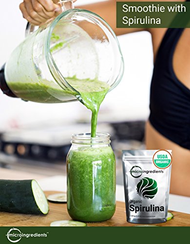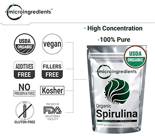 USDA Organic Spirulina Powder. Treated by heat only. Non-irradiated. 100% pure, vegan, no additives or preservatives, fillers free, non-gmo, gluten-free, no artificial colors or flavors.