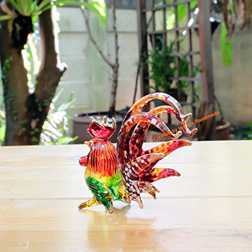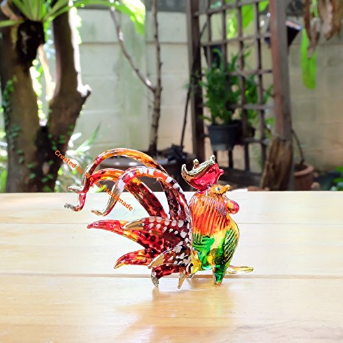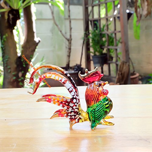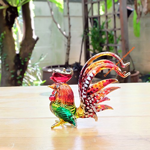 Measures L 2.25 inches X W 0.8 inches. X H 2.5 inches. Since it is handmade work so it may has a little different detail from picture. Matching glass rooster figurine available, please search on Amazon : "B06Y3WRGNK" The matching collection of glass rooster.