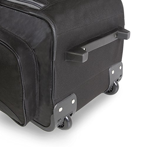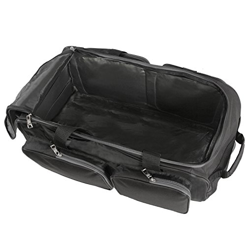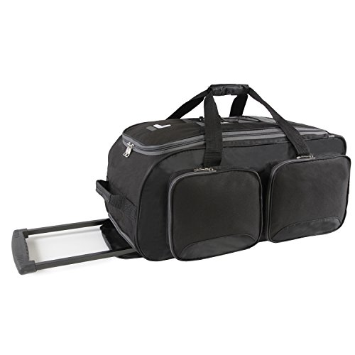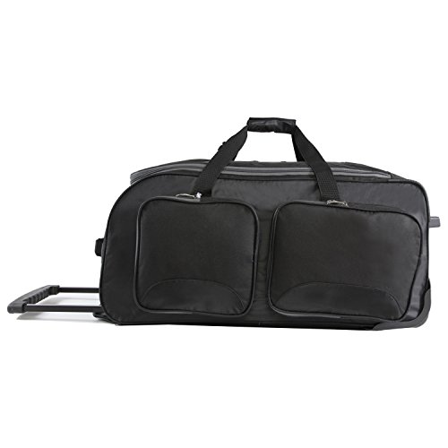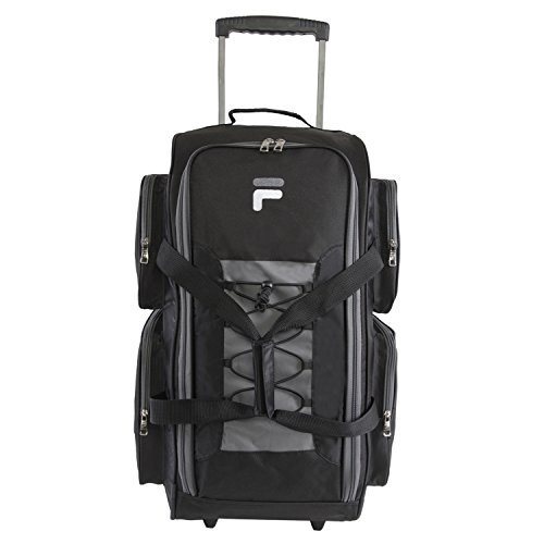 -. Binding : Apparel -. Brand : Fila -. Department : unisex-adult -. Feature : Rolling duffel constructed of durable dobby nylon. / Spacious, full zippered main compartment. Four side compartments provide additional packing capacity for smaller items. / Pull out handle zips away when not in use. Two comfort grip padded handles for easy accessibility. / Smooth gliding in-line wheels for easy travel. / 13x26x16 -. Label : Fila Lage -. Manufacturer : Fila Lage -. PackageQuantity : 1 -. ProductGroup : Apparel -. ProductTypeName : BAG -. Publisher : Fila Lage -. Studio : Fila Lage -. Title : Fila 26" Lightweight Rolling Duffel Bag Duffel Bag