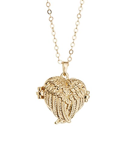 -. Title : Crossed Angel Wings Gold Heart Locket Necklace 14k Gold Plated Silver