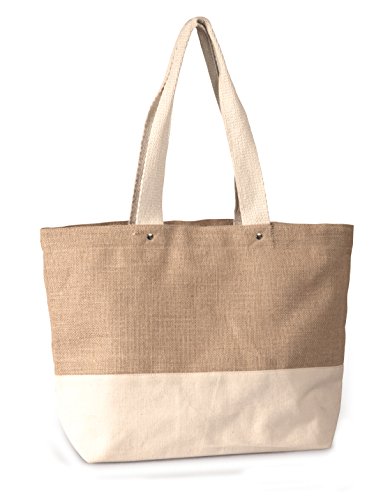 10 oz. Cotton and Jute Combination Shopping Tote bag with Cotton handles 18.5"W x13"H x 5"Gusset - Carrygreen Bags
