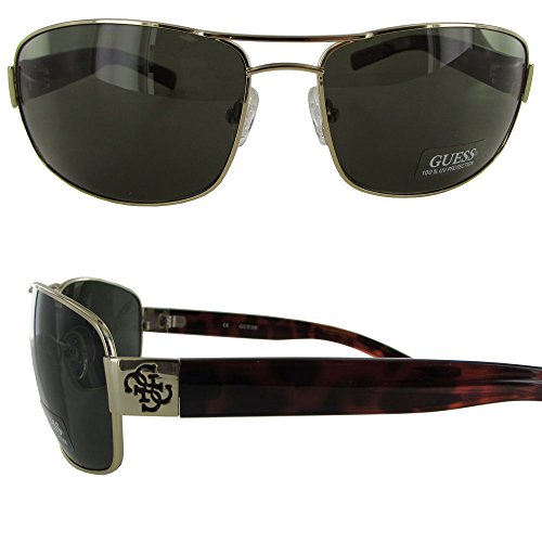 An enhanced brow bar give these Guess sunglasses a nice new twist to the classic aviator look. The gold-tone frames and green lenses complete this fashion forward look, making these shades the perfect addition to any man's collection.