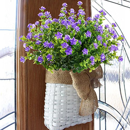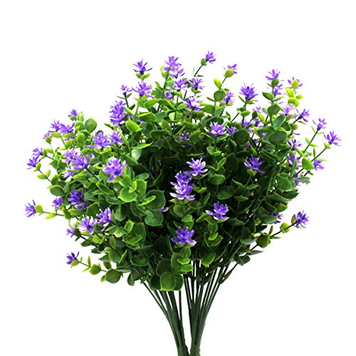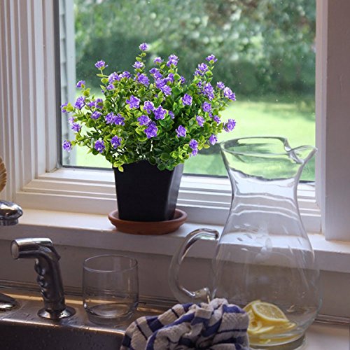 - 4psc artificial shrubs plants Eucalyptus Leaves with Purple Flower. Includes 4 bunches, 7 stems each bunch, total 35 stems. 5.9" Wide x 12.6" Tall.