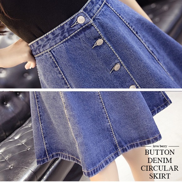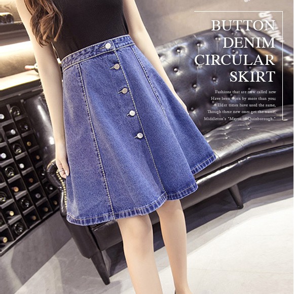 ひざ上丈ではきやすい、デニムのフレアスカートです♪