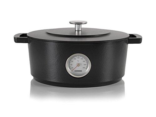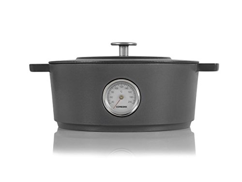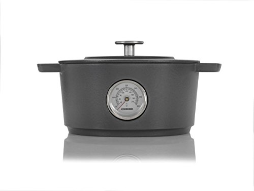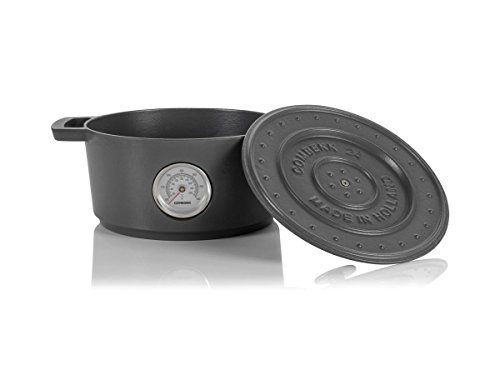 Combekk Homeware is quality cookware made in Holland. Fully enameled cast iron products are made entirely from recycled materials with a tough and functional design. The special forge and right mix of materials combine to product pans of the highest quality. What makes Combekk unique? 1. Industry first-the one and only dutch oven with built-in precision thermometer. Provides precise control for all styles of cooking 2. Perfect heat distribution-even distribution with no hot spots 3. Ideal for stewing-because the lid completely seals the pan 4. Natural flavour and preservation of vitamins- Combekk pans cook food beautifully on high heat 5. Single layer enamel-durable, prevents chipping and makes pan easy to clean. 6. Suitable for all heat sources-gas, electric, ceramic and induction 7. Energy efficient-Combekk pans retain their heat for a long time 8. Made in Holland 9. 40 Year Guarantee- Combekk provides a 40 year guarantee on all of the cast iron parts. Damage from it being dropped, banged, incorrect use or incorrect cleaning methods are excluded from the guarantee, as is natural wear and tear, consequential and incidental loss and damages. Your receipt is your proof of guarantee. Control to cook the way you want! • • • • • • • Poaching - 149 °F / 65 °C Heating - 167 °F / 75 °C Stewing - 176 °F / 80 °C Steaming/Smoking/Boiling - 212 °F / 100 °C Frying - 230 °F / 110 °C Deep Frying - 320 °F / 160 °C Baking - as per recipeFeature