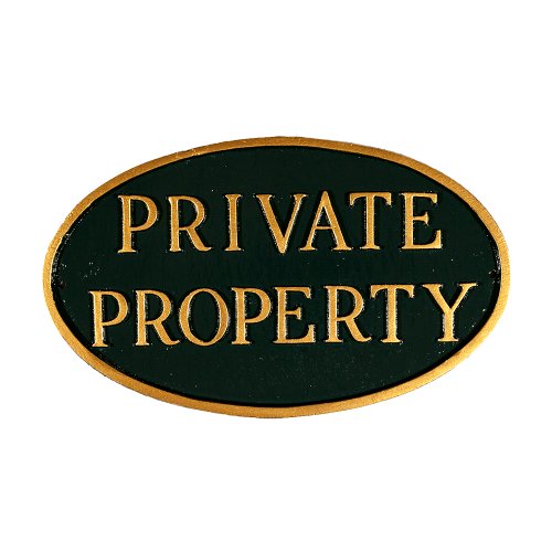 Montague Metal Products SP-18sm-HGG Private Property Oval Statement Plaque, Small, Hunter Green and Gold