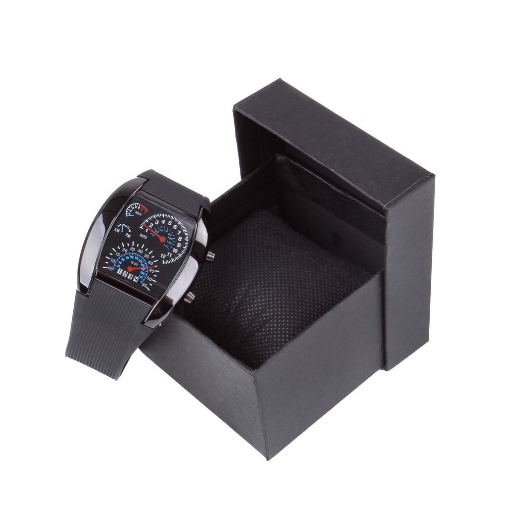 LED デジタル 腕時計 スピードメーター 風 ブラック 黒 ケース 箱 付き かっこいい メンズ ウォッチ オシャレ