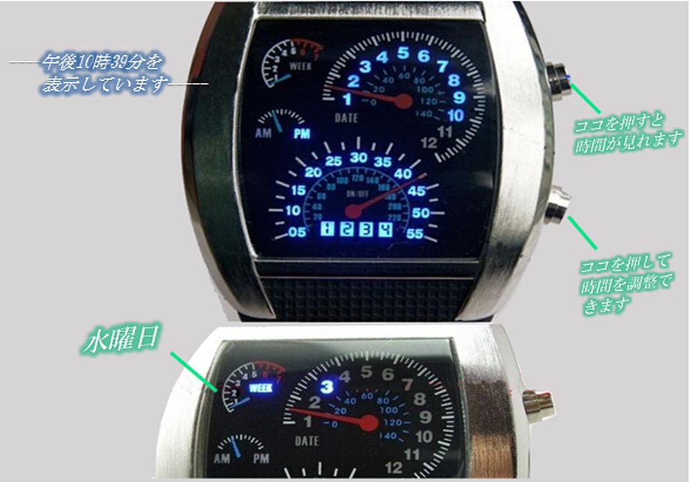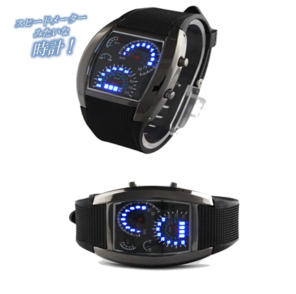 スピードメーター風の斬新なデザイン!青く光るLEDがかっこいい腕時計!