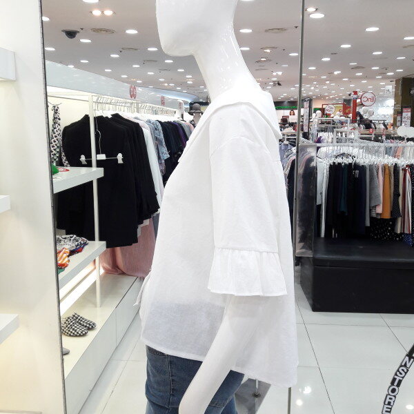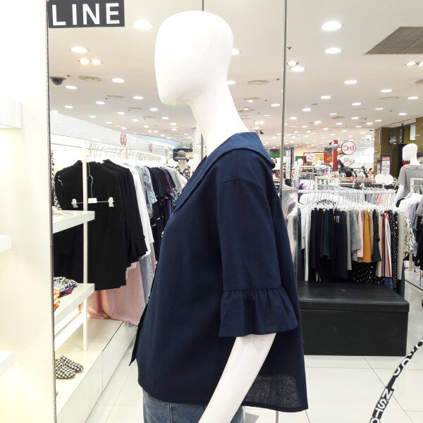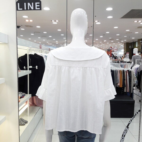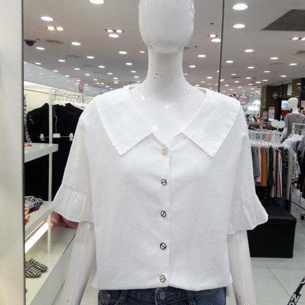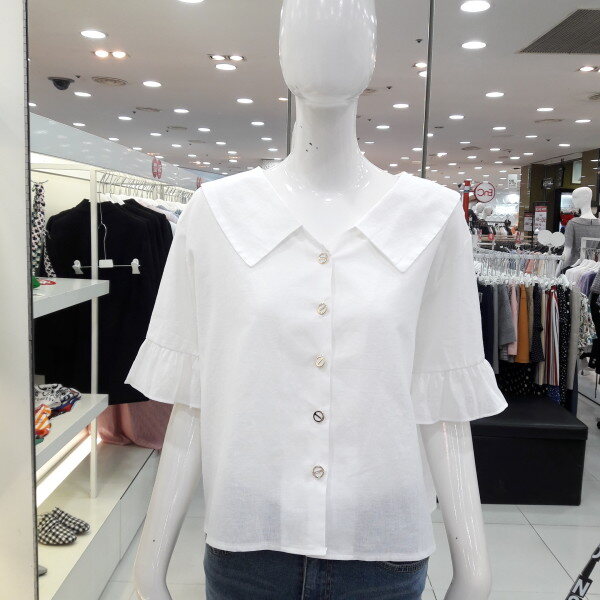 18년 신상 러블리 넥선포인트와 소매주름이 여성스럽고 사랑스러운 스타일입니다 단추포인트가 세련되며 슬랙스 스커트에 잘 어울리는 아이템입니다