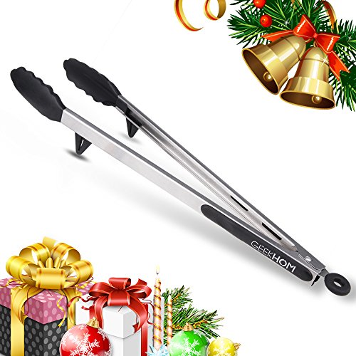 GEEKHOM Tong, 16-Inch Premium BBQ Grilling Tongs, Non-Slip and Non-Stick Kitchen Cooking Tong with Silicone Tips and Locking Head for barbecue, Salad (Black)