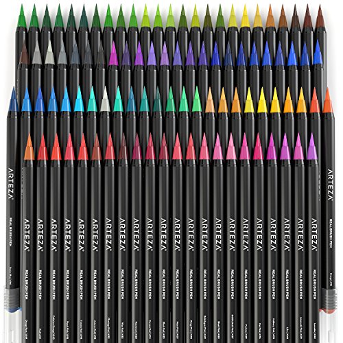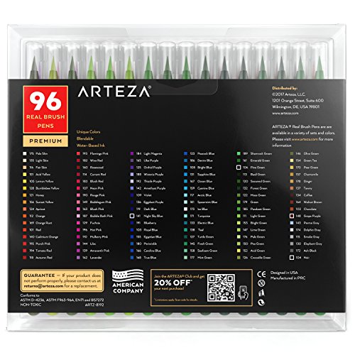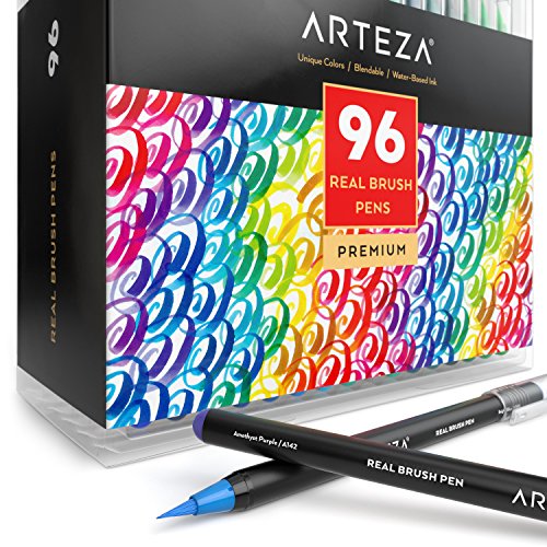 Arteza Real Brush Pens, 96 Paint Markers with Flexible Brush Tips, Professional Watercolor Pens for Painting, Drawing, Coloring & More, 100% Nontoxic, Multiple Colors