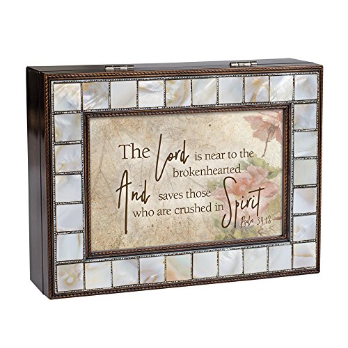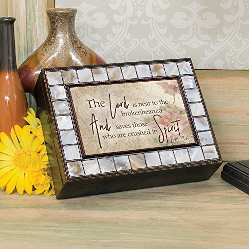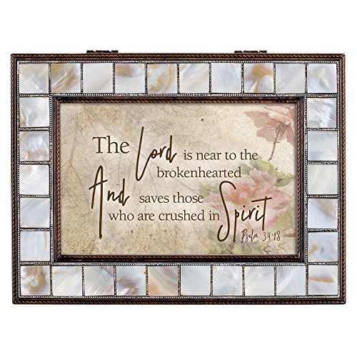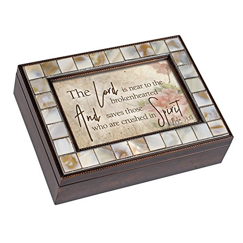 Lord is Near the Brokenhearted Mother of Pearl Amber Keepsake Music Box Plays Amazing Grace