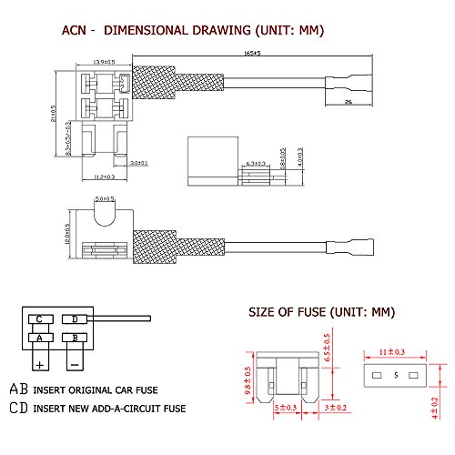 Mini Add-A-Circuit Fuse Holder, Plug into an existing fuse holder,16AWG new wire lead for new circuit adding additional fuse 15AMP