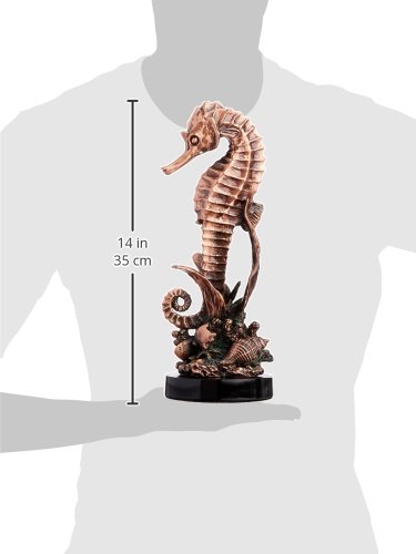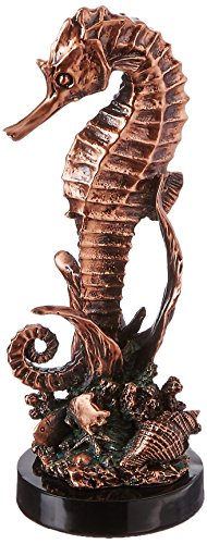 StealStreet SS-BA-C-D2082 Copper Seahorse Resting By Coral Reef with Conch Shell Display Statue