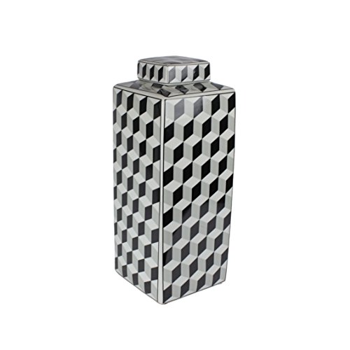 Sagebrook Home Decorative Ceramic Covered Jar White, 6.5x6.5x16, Black