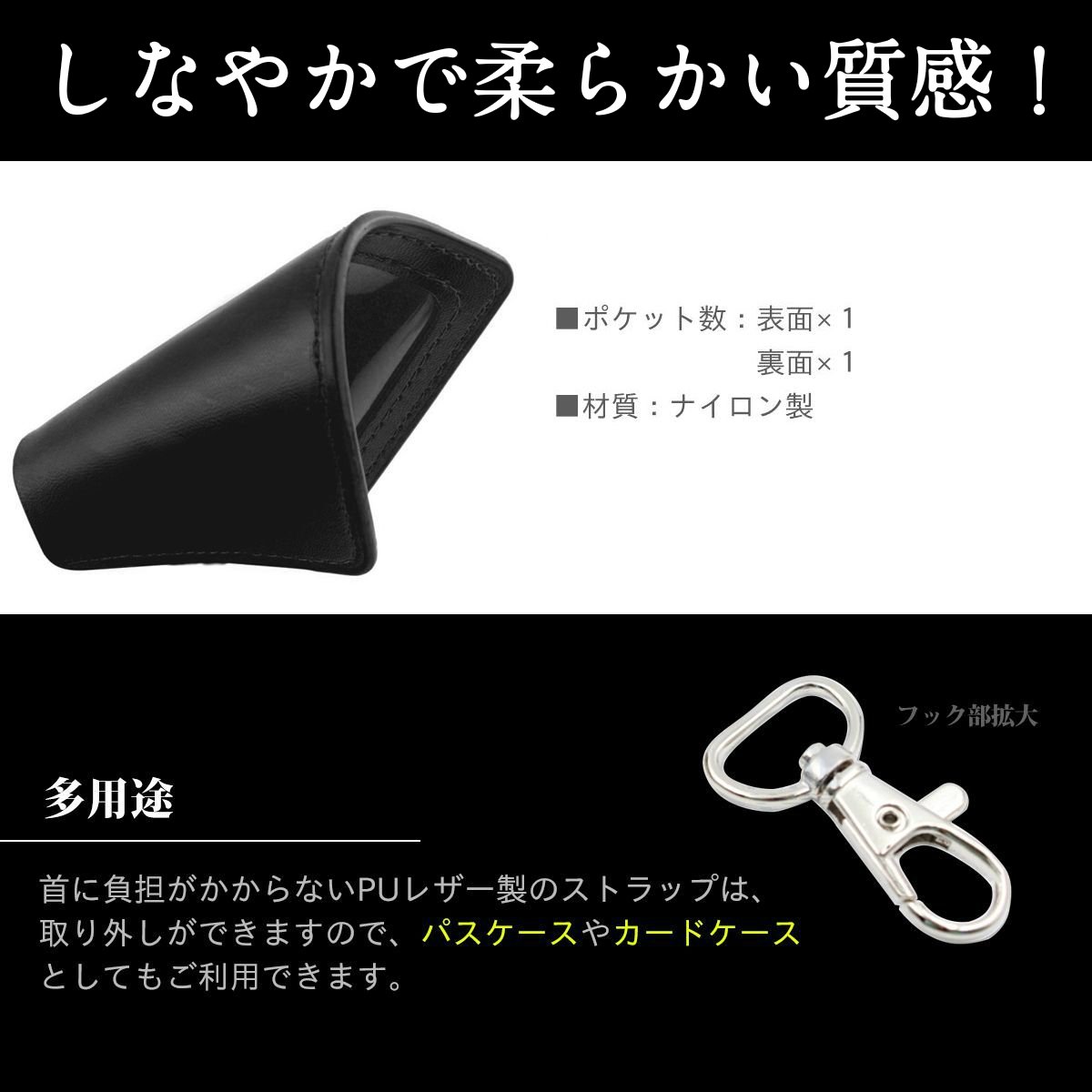 [Multi-purpose] PU leather straps which are not burdened on the neck can be removed, so they can also be used as a pass case or a card case.