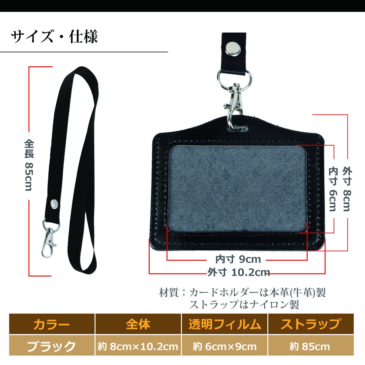 【Size · Specification】 Approximately 8 cm × 10.2 cm (Overall) About 6 cm × 9 cm (transparent film) Approximately 85 cm (full strap length)