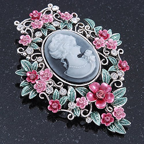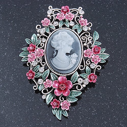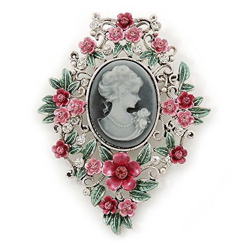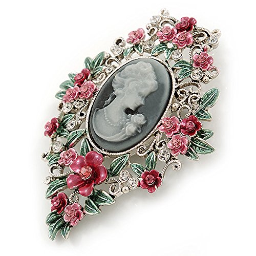 -. Feature : Style: cameo / Occasion: cocktail party, mothers day / Metal Finish: silver plated / Material: enamel / Gemstone: diamante
